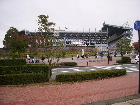 スタジアムの隣はこの前開催されたホットライズのイベント会場だったところ