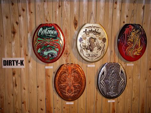 4名のすばらしいピンストライパーの方々が作品を出展し、また当日オーダーも受けられ
