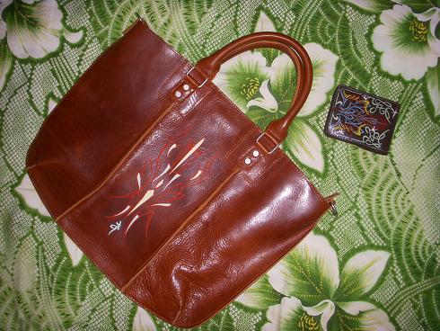 革の鞄にピンスト